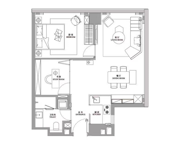 灵活分割、自由多变的户型结构,充分满足社交、居住等多功能复合用途。