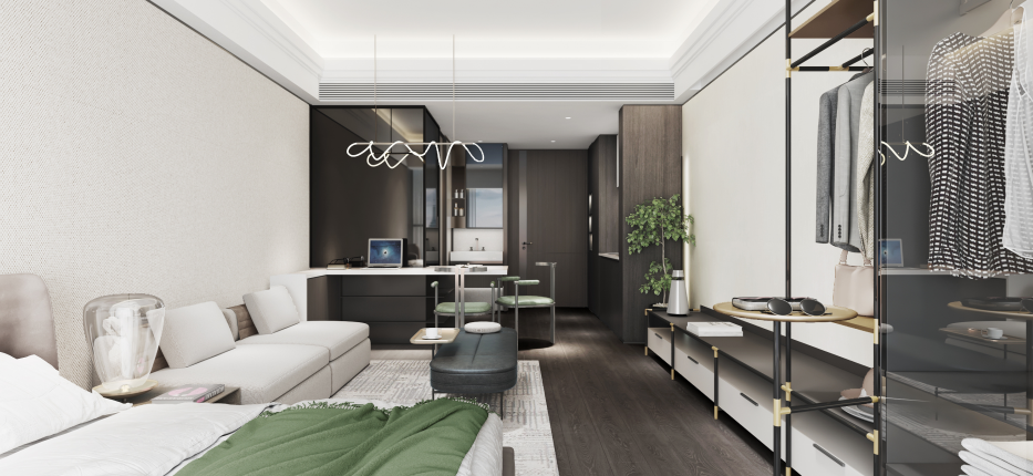 与市面上普通公寓不同的是,华寓严选城市核心地段,并采用五星级酒店式服务标准,结合城市性格和人文特色,满足高圈层人士对生活质感的美学追求。