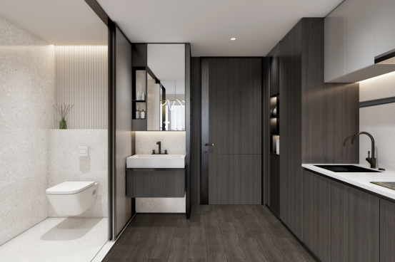 在品质感打造上,华寓为全屋精装交付,精选国际国内一线精工品牌,搭配户式中央空调,为高净值人士免除繁杂耗时的装修过程。