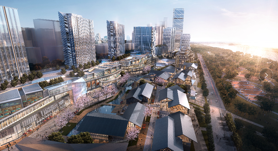 水岸艺术街区未来将采用开放式、里巷交错的建筑布局。以文化与体验为基础,将水景环境与建筑形式进行融合,呈现可观、可游、可玩、可购、可体验的街区氛围。