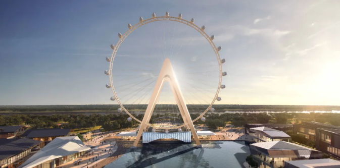 比如:国内最大太空舱摩天轮。一共28个轿厢,每个轿厢各具特色,可容纳超过20人。