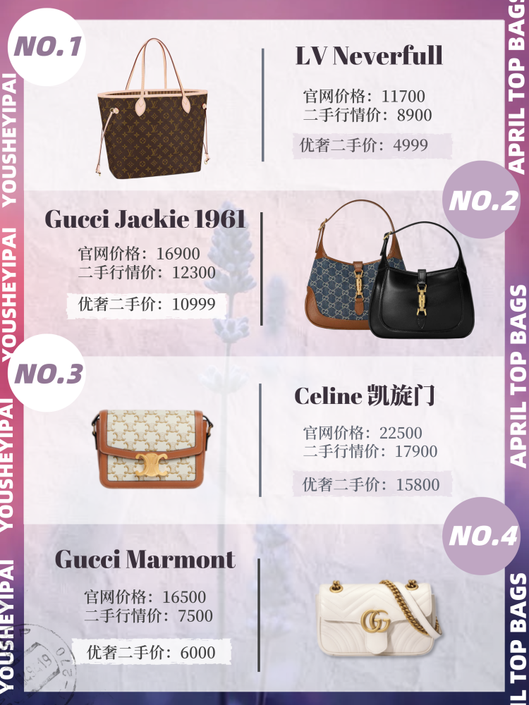 本月登顶的就是剧中蒋欣饰演的角色田雨岚的贴身包包LV Neverfull,这个包包经典、耐造、能装,我不允许你没有!紧跟其后的就是GUCCI的JACKIE 1961和CELINE的凯旋门。