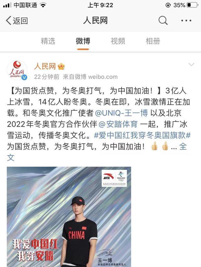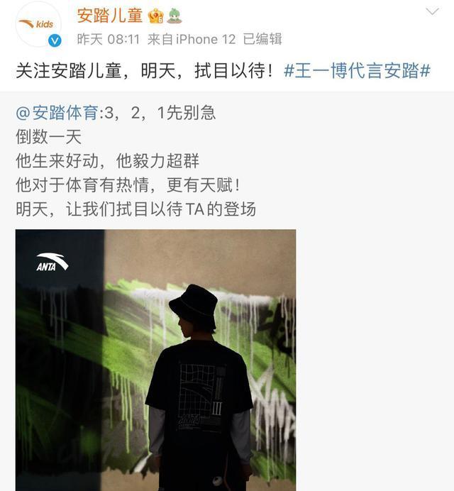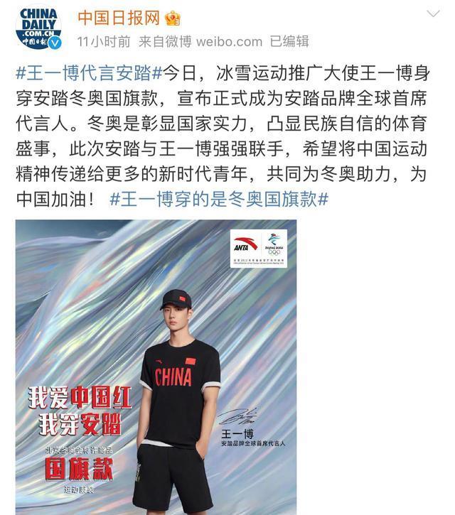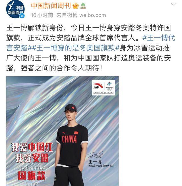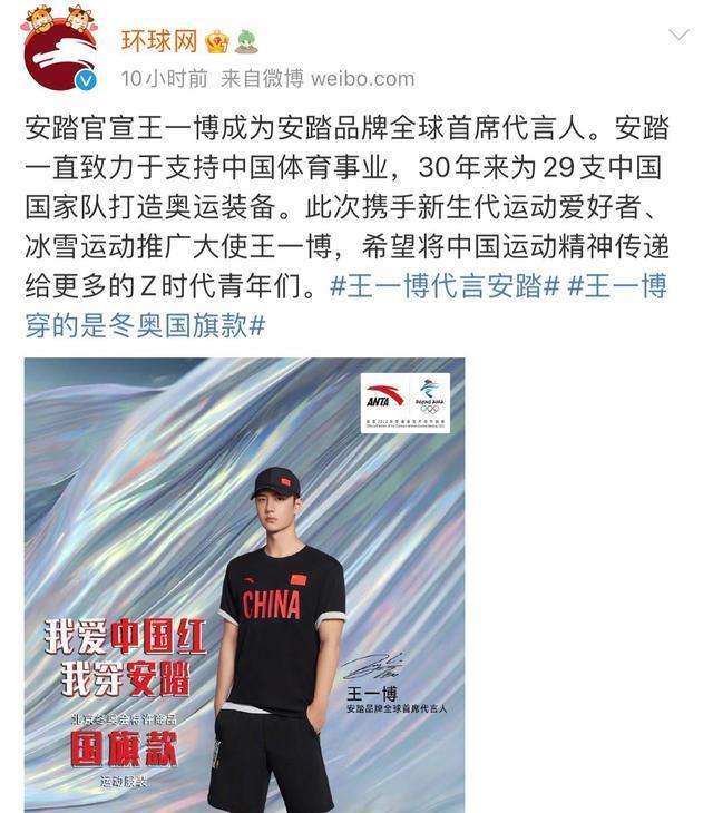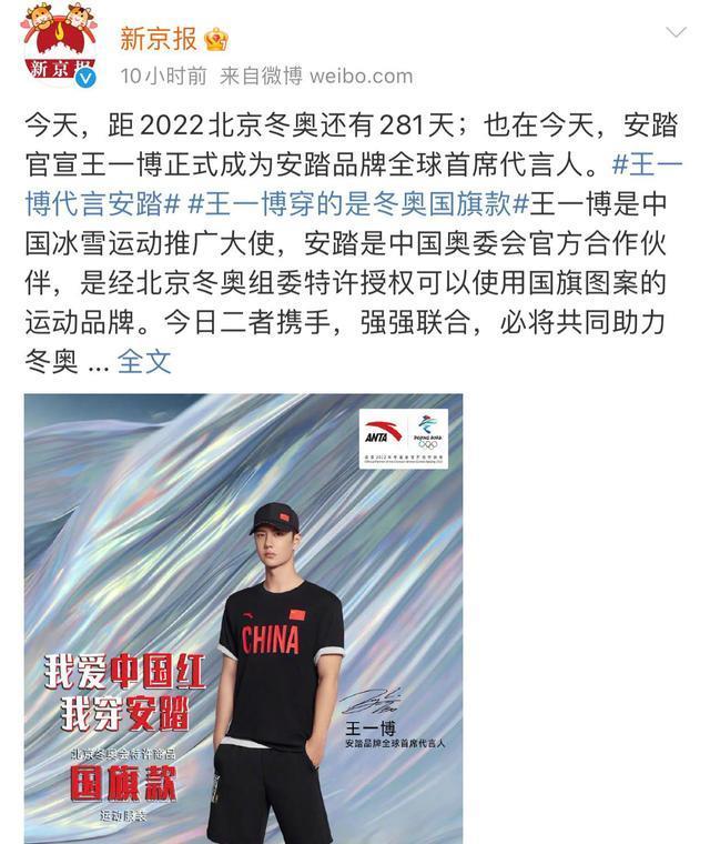 一个月之后,安踏官宣首席全球代言人,王一博最终选择了安踏。