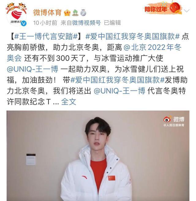冬奥文化大使王一博与冬奥官方合作品牌安踏联手,为国货点赞,为冬奥打气,为奥运加油。