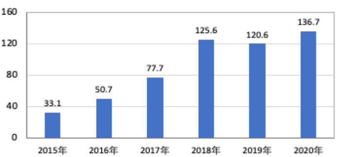 2015-2020年国内新能源汽车销量(单位:万辆)