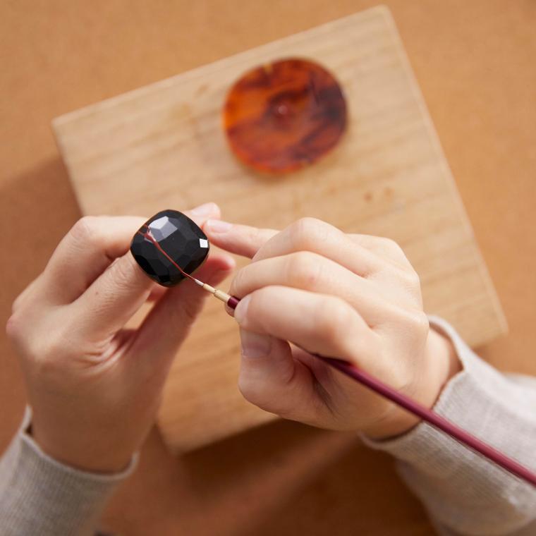 卡斯塔尔多在2019年访问日本时,对这项技术非常着迷,当时他正在寻找灵感,为Pomellato东京精品店创作一套独特的收藏品。这个想法逐渐发展起来,不久,一位杰出的手艺大师与卡萨·波梅拉托的熟练工匠和妇女们携手合作。其结果是最终的豪华上骑自行车与每一个精心修复的石头讲述自己的故事。米兰和东京可能相距很远,但是这个项目揭示了一种罕见的美的视野,它包含了多样性和不完美,以及崇高的掌握。
