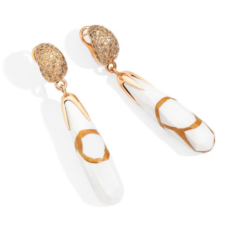 玫瑰金耳环与高龙和棕色钻石的高珠宝收藏品2021年由波梅拉托重新解释古代日本补金技术。